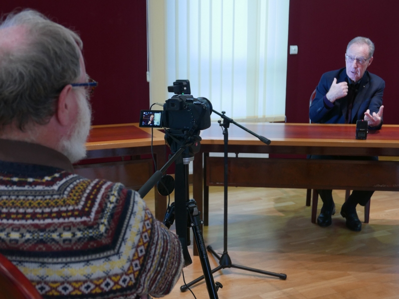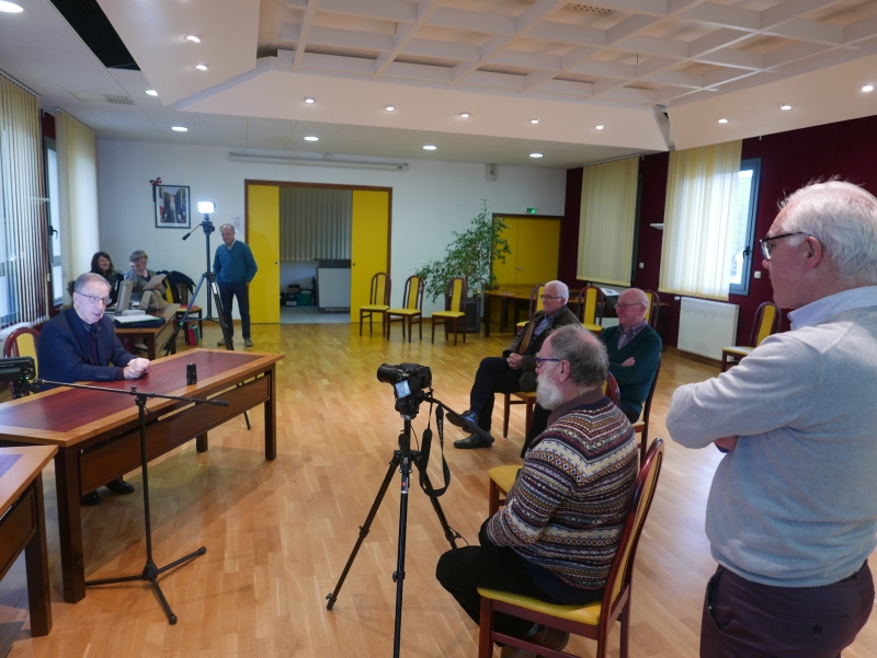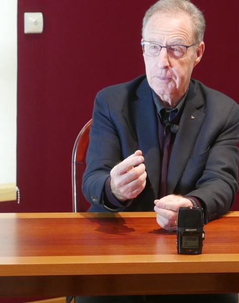 Devant le collège, Gérard Gendry nous a parlé de son rôle de premier directeur laïc.