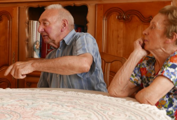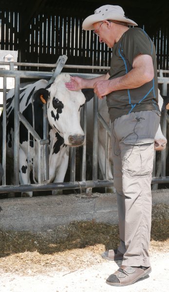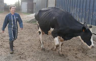 A gauche, la famille Rivron dans la ferme de la Guédonnière.
